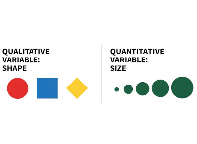 Like qualitative data variables, qualitative graphic variables (e.g., shape or color hue) have no intrinsic ordering.